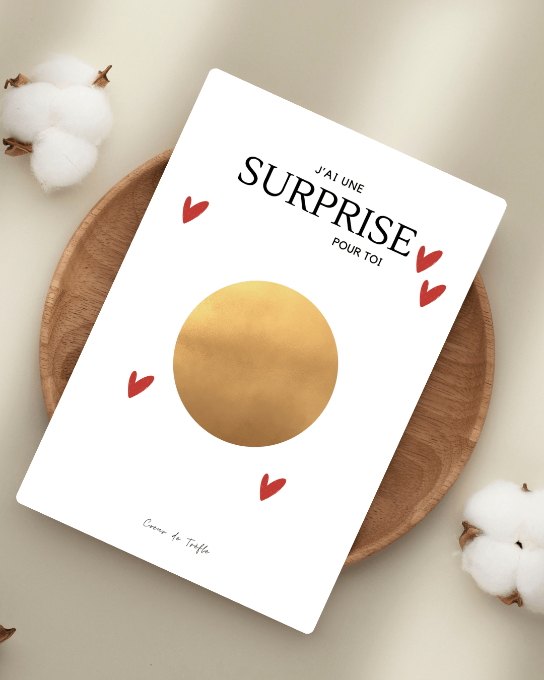 ✔ Zone à gratter ronde (type "bientôt nous serons 3", "tu vas être mamie"…)